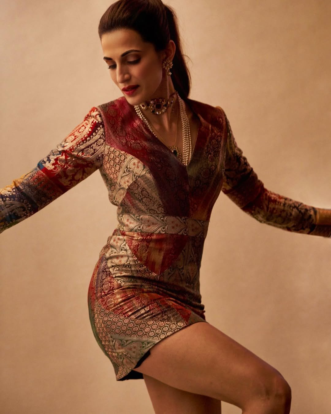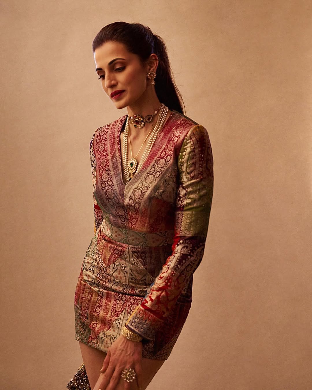 This dress, designed by me at Shilpa Reddy Studio, was made from leftover pieces of vintage fabrics. Every small piece of woven heritage fabric is priceless to me, so I reimagined it into a contemporary silhouette time consuming to create, yet a tribute to the beauty woven into every thread. I so cherished wearing it.